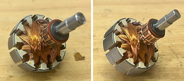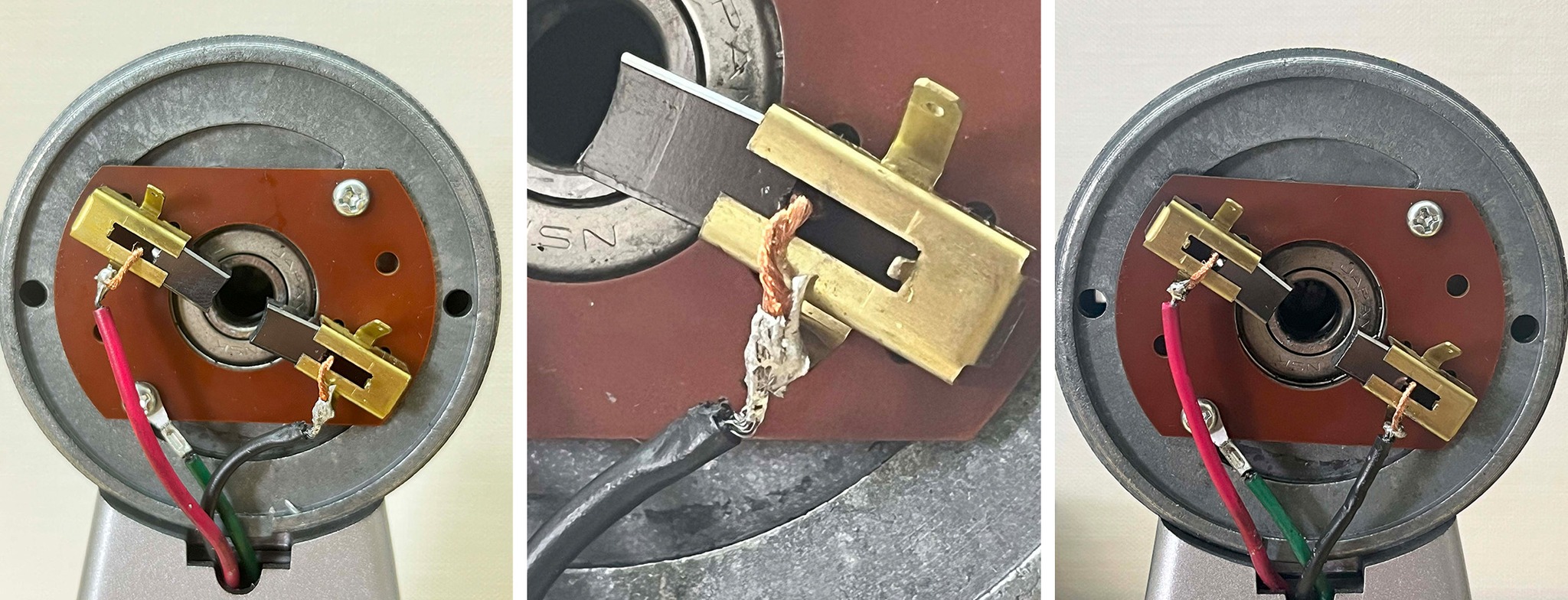・修理を試み、内部の清掃、カーボンブラシの交換を行ったが症状は改善されず