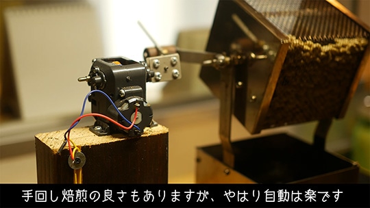 ただ普通の焙煎と違うのは手回しではなく、モーターで回すというところです。