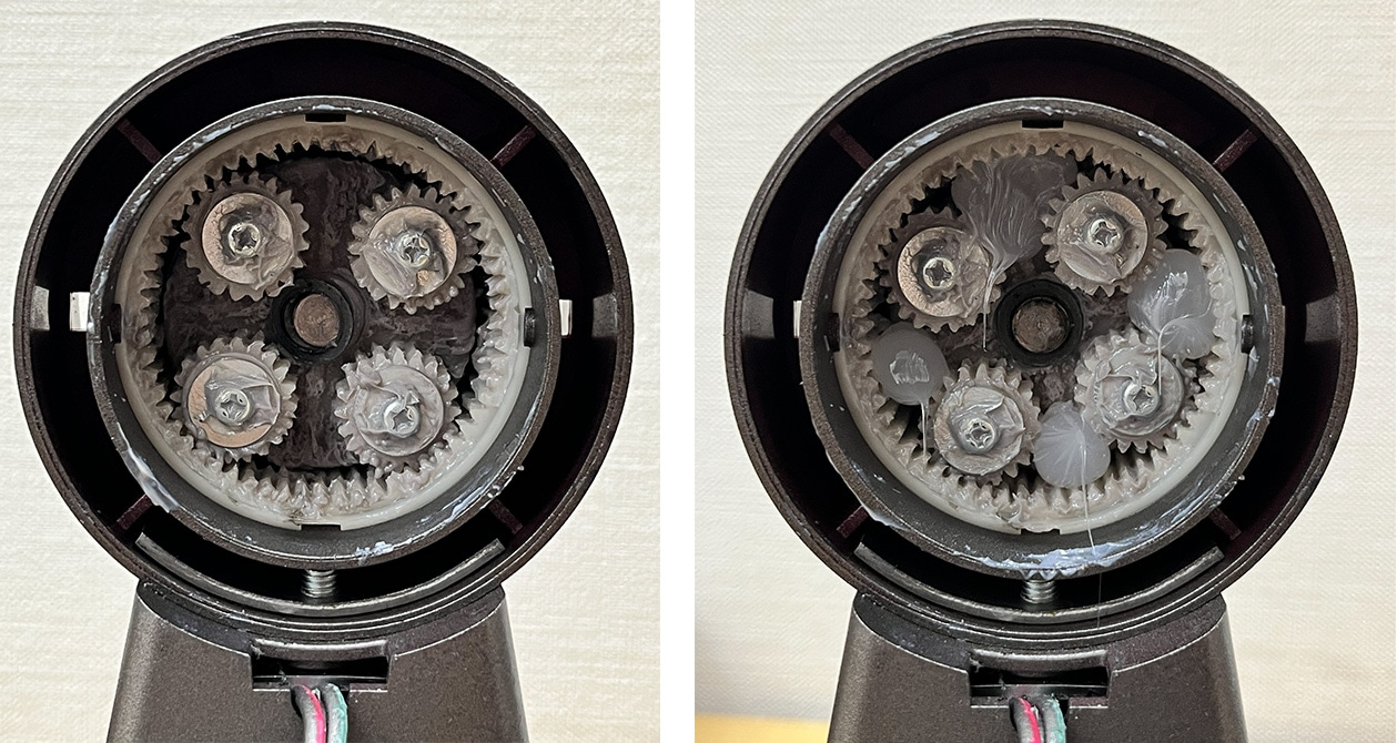 歯の隙間が見えるような状況でしたのでギアの部分にグリスを追加しています。