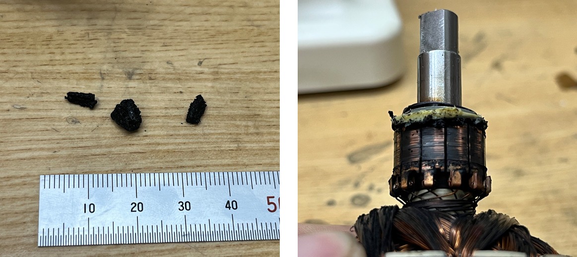 カーボンブラシの摩耗は現状交換するレベルではなく、これがヒューズ切れの直接的な原因ではありませんでした。