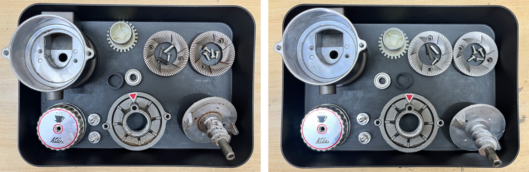 動作確認のため、コーヒーを挽く部分も徹底してコーヒー汚れを除去致しました。