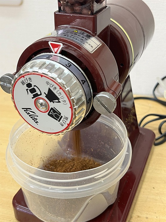 ※清掃の際に挽目設定のズレが確認されました。2クリック分、粗挽きになっていたため調整を行いました。今までの目盛り2は目盛り3と同じです。